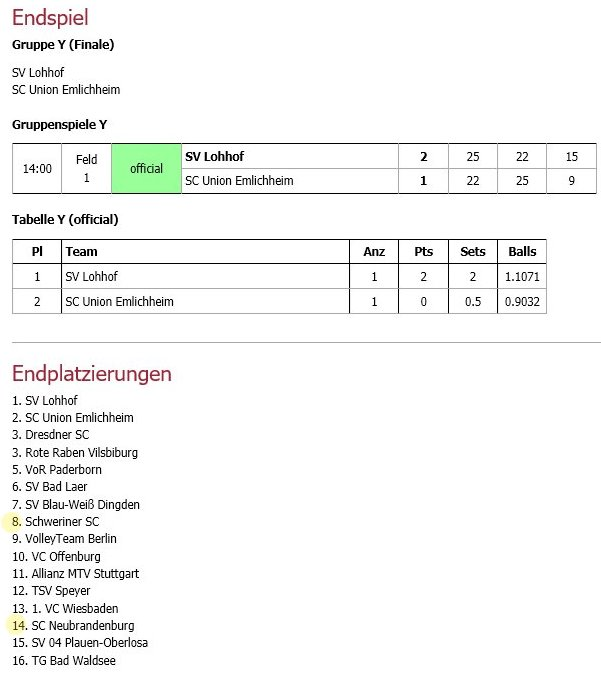 Platz 8 und 14 lauten die Ergebnisse unserer Teilnehmerteams bei den Deutschen Meisterschaften der U18 weiblich in Biberach (BaWü). Deutsche Meisterinnen wurden Mädels vom SV Lohhof welche sich im Finale mit 2:1 gegen die Mädels vom SC Union Emlichheim durchsetzten. Wir sagen allen Teilnehmerinnen Herzlichen Glückwunsch!!!
