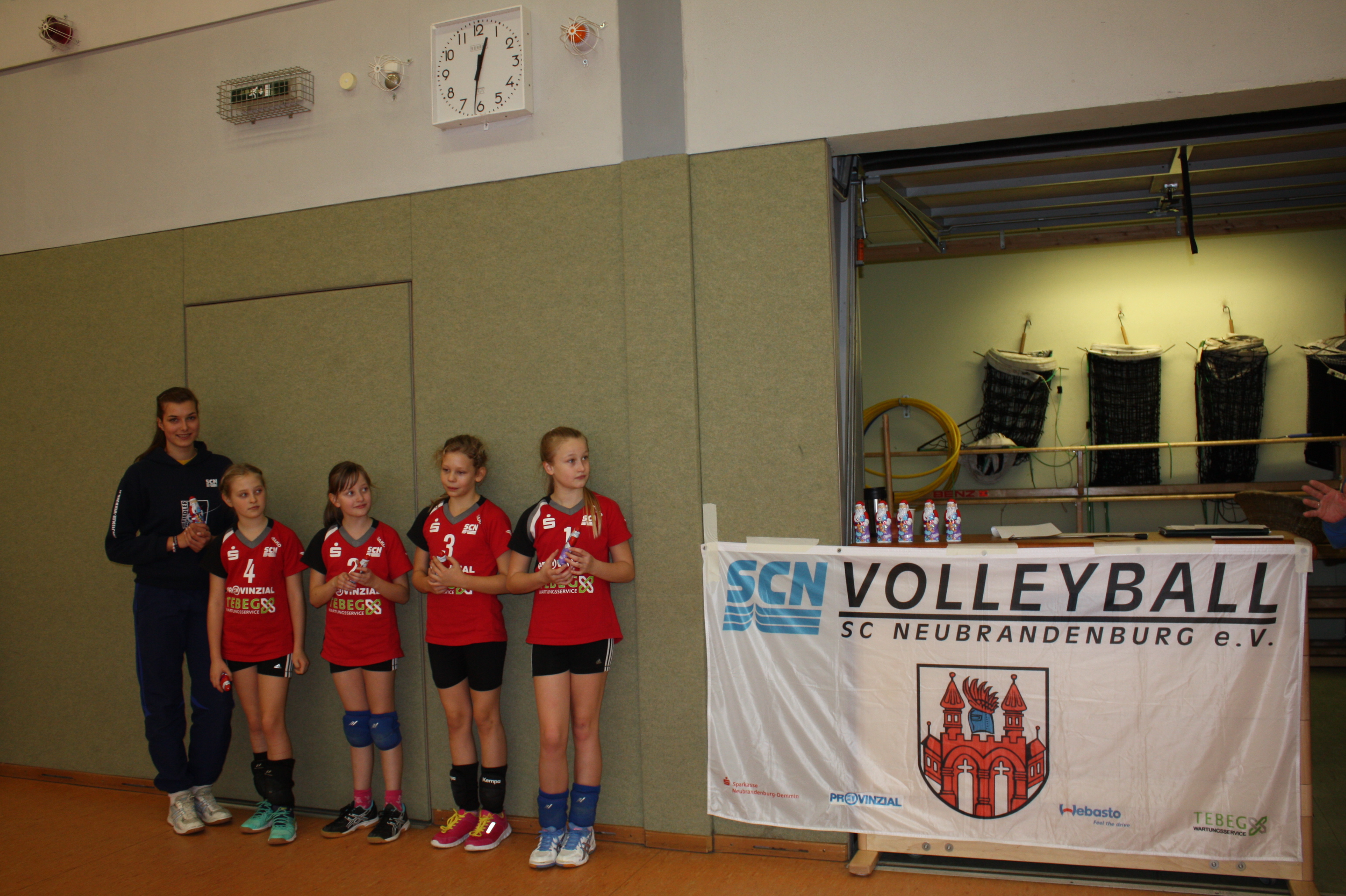In Neubrandenburg trafen die Mannschaften SCN I und SCN III auf den Schweriner SC II und IV, gespielt wurde jeder gegen jeden. Als erstes standen die vereinsinternen Duelle auf dem Plan. Während sich der SCN I in zwei Sätzen (25 : 20 und 25 :11) gegen den SCN III durchsetzen konnte, entwickelte sich ein spannendes Spiel zwischen dem SSC II und dem SSC IV. Beide Mannschaften konnten einen Satz gewinnen und im Tiebreak setzte sich die zweite Vertretung mit 15 : 9 durch. Auch das Spiel zwischen dem SCN III und der zweiten Mannschaft des SSC musste im Tiebreak entschieden werden. Die Freude bei der von Sarah George gecoachten Mannschaft war groß, als die Neubrandenburger Mädels diesen mit 15 : 10 für sich entscheiden konnten. Das Parallelspiel konnte die „erste“ des SCN gegen den SSC IV souverän mit zweimal 25 : 6 für sich entscheiden. Auch in der letzten Spielrunde konnten sich die beiden Neubrandenburger Vertretungen mit jeweils 2 : 0 durchsetzen und sicherten sich damit die ersten beiden Plätze und die Qualifikation für das Finale am 21.02.2016 in Neubrandenburg.