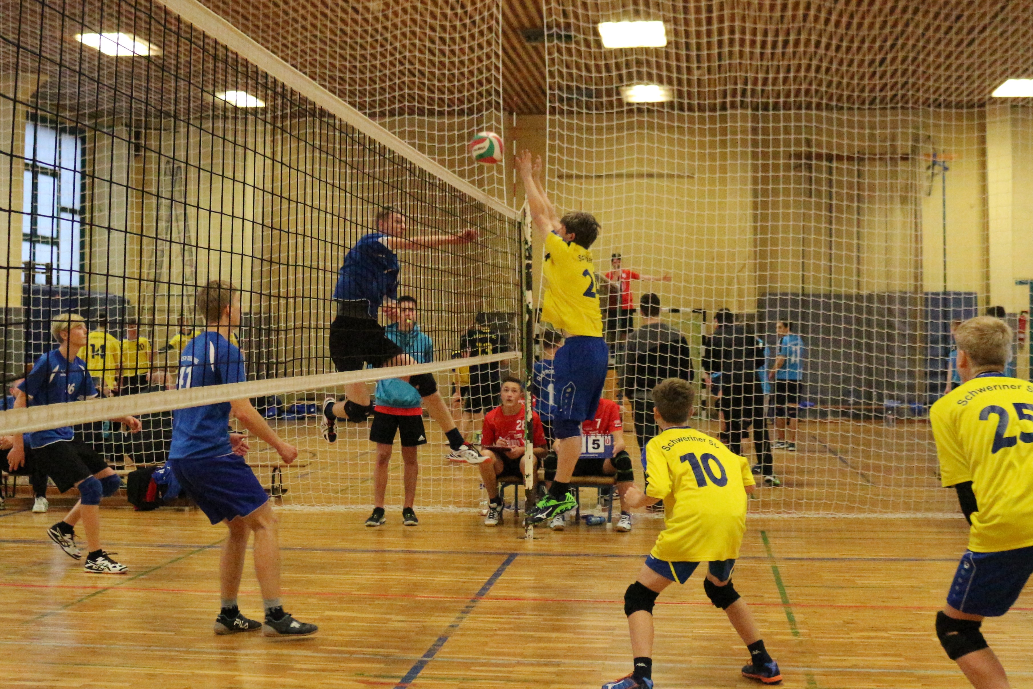 Nachdem Stralsunder VV, PSV Rostock und am Vorabend dann auch noch SV Warnemünde und Pampower SV abgesagt hatten, spielten die verbliebenen 5 Mannschaften ein sehr schönes Turnier im Modus Jeder gegen Jeden über 2 Gewinnsätze. Favorit Schweriner SC 1 wurde seiner Rolle gerecht und beendete alle Spiele 2:0. Viele der anderen Spiele gestalteten sich spannend und auf einem guten spielerischen Niveau. Dem Zweitplatzierten Rehnaer SV gelangen drei 2:0-Siege, Dritter wurde das U16-Team des SSC, das gegen Greifswald und Wismar im Tiebreak gewann. Letztere blieben ohne Sieg und wurden 5. hinter ESV Turbine Greifswald. Für alle teilnehmenden Teams waren die Spiele eine gute Vorbereitung auf die Landesmeisterschaften. Auch die Schiedsrichter (das spielfreie Teams schiedste auf beiden Feldern) erbrachten eine gute Leistung. Ein kleiner Wermutstropfen war die Verletzung eines Wismarer Spielers in der letzten Runde. Wir wünschen ihm gute Besserung!