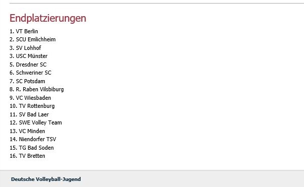 Endplatzierungen
