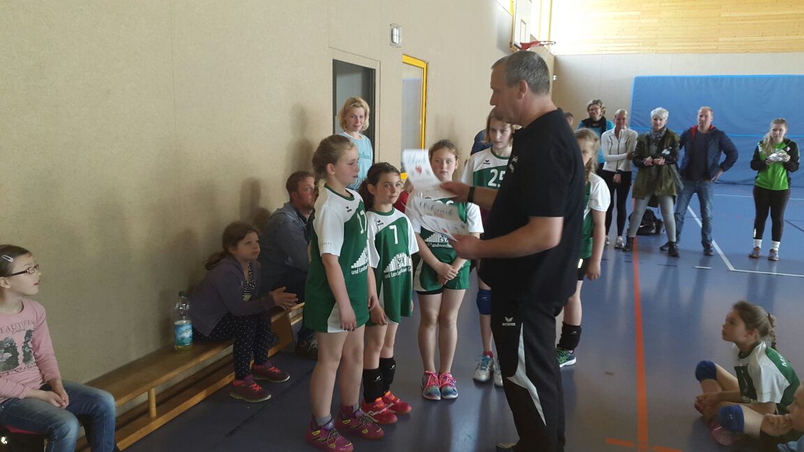 Zum Turnier: es wurde dann zwangsläufig Jeder-gegen-Jeden gespielt. In einigen Spielen war die Spannung kaum noch auszuhalten: So im zweiten Satz des Spiels SSC III gegen Pampow II, das erst bei 30:32 die kleinsten Pampowerinnen als Sieger sah und 2:1 für den Schweriner SC endete. Einige schöne Aktionen waren zu sehen, die Spielfreude war den Kindern anzusehen. Das Ergebnis: