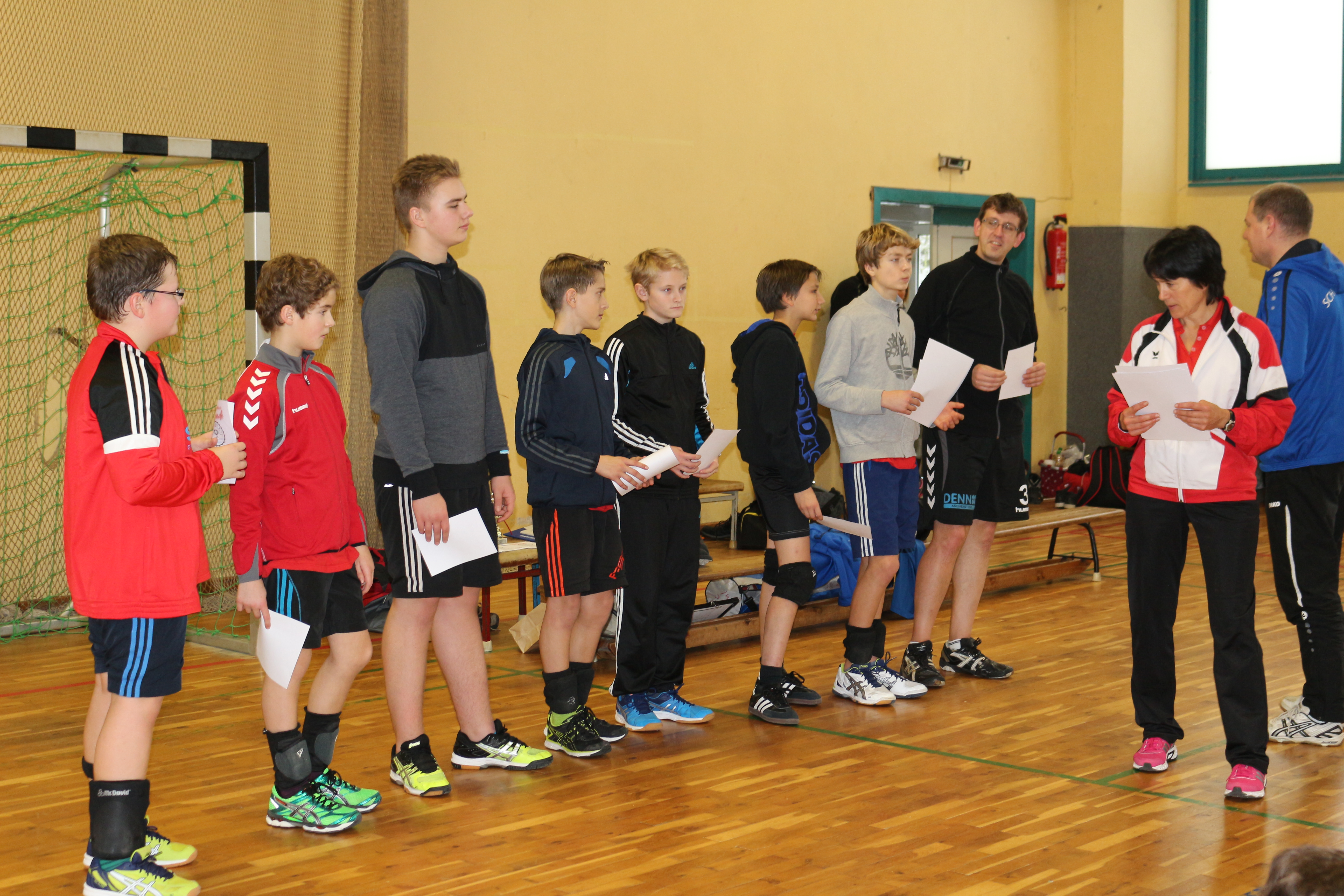 Leider waren nach der kurzfristigen Absage am Morgen (wegen Spielermangel) seitens des PSV Rostock und mit der Absage des PSV Neustrelitz nur noch 4 Mannschaften übrig, die allerdings mit großer Spielfreude ihren Wettkampf bestritten. Da der RSV zwei Hauptschiedsrichter stellte, konnte trotzdem wie geplant auf den beiden Feldern gespielt werden, nun im Modus Jeder gegen Jeden über 2 Gewinnsätze. Väter und Auswechselspieler kümmerten sich um Anzeigetafeln und Spielprotokolle; der Wettkampf verlief trotz fehlender 2. Schiedsrichter und Linienrichter sehr fair.