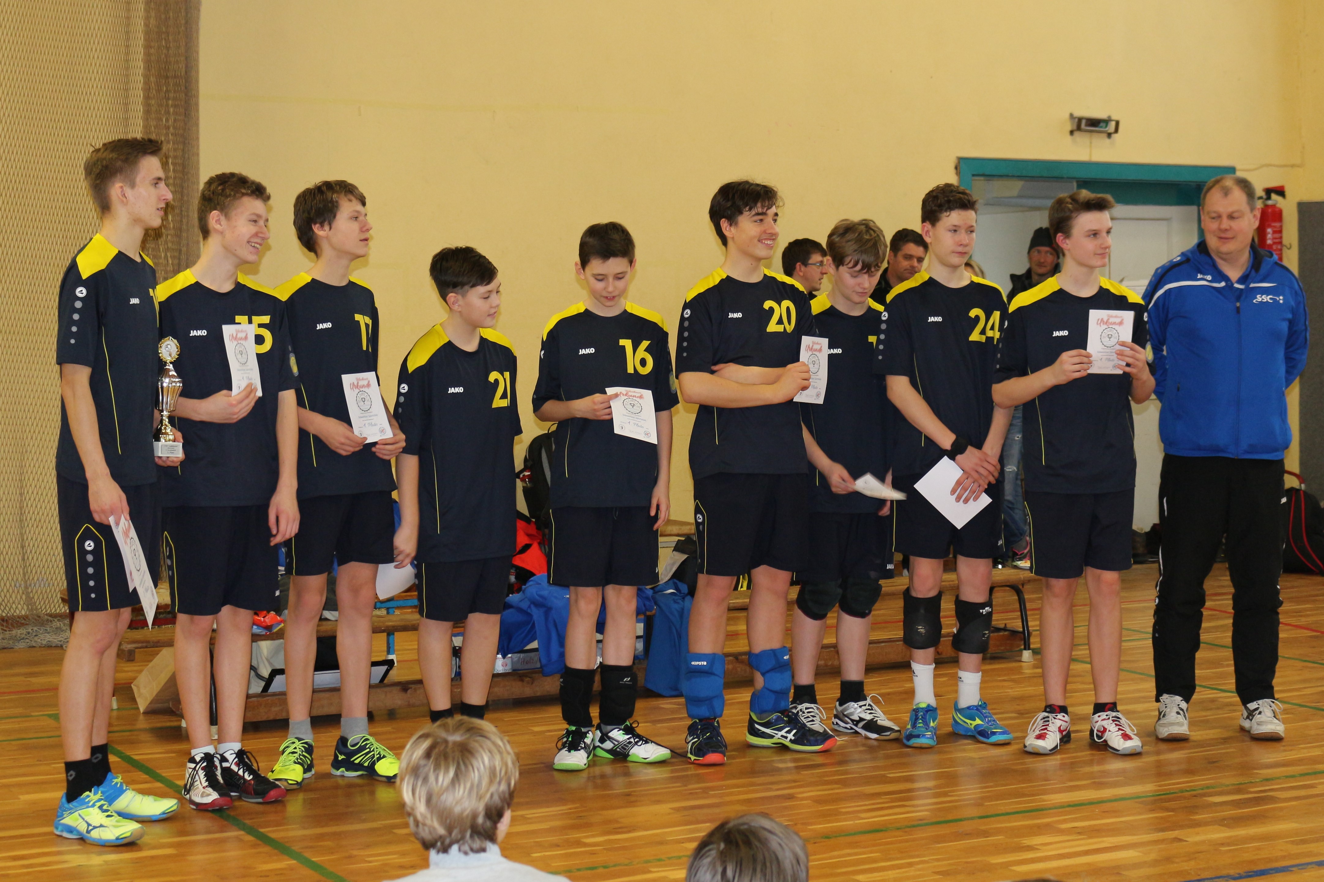Die Stralsunder konnten sich in ihrem letzten Spiel gegen Greifswald, jetzt ging es um den 3.Platz, noch steigern und erreichten hier ihre höchste Ballpunktzahl (12; 19). Allerdings ließen sich die Jungen des ESV Turbine den Sieg nicht nehmen und hatten somit auch einen der 3 begehrten Pokale erkämpft.